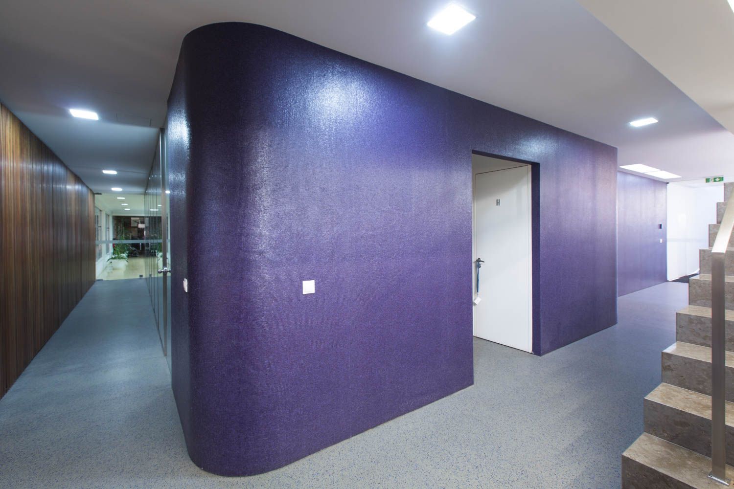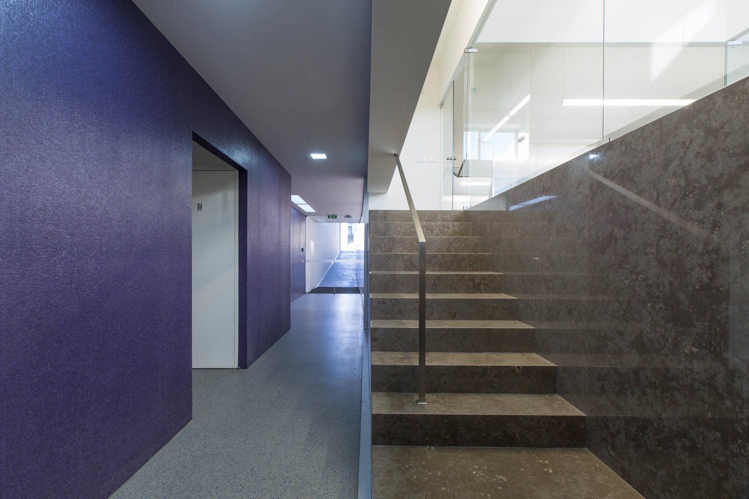 O conceito arquitetónico baseia-se na clareza e continuidade visual dos percursos. As divisões foram definidas para favorecer a comunicação entre departamentos e permitir a entrada de luz natural em todas as áreas de trabalho. A paleta de materiais e cores aposta em tons neutros, superfícies claras e texturas suaves, transmitindo serenidade e coerência espacial. A iluminação artificial foi cuidadosamente estudada, articulando luz direta e difusa para criar um ambiente equilibrado e visualmente confortável.