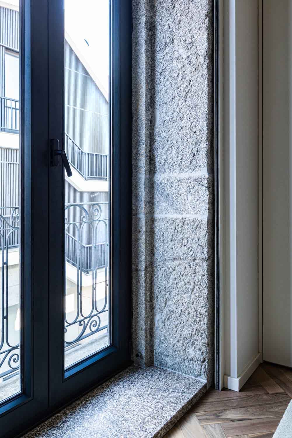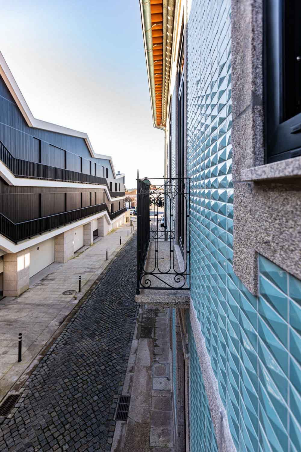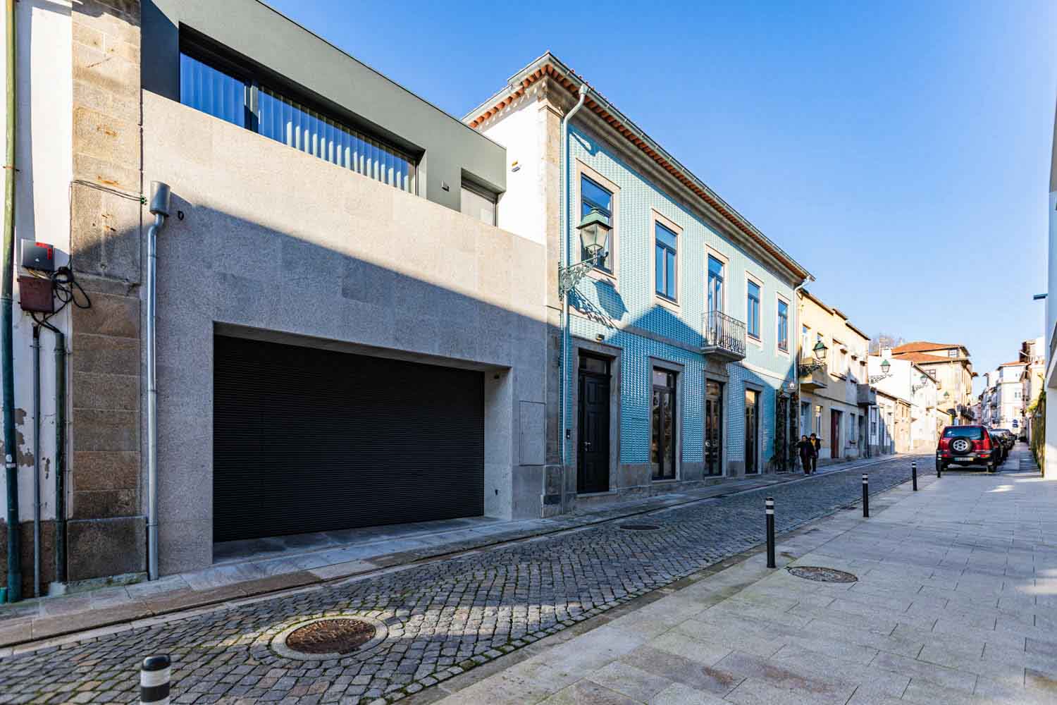 O volume onde se encontra a entrada carral, define o conceito do projeto, onde o diálogo entre passado e presente é a premissa central. Este volume moderno de linhas contemporâneas desenvolve-se em dois pisos: o rés-do-chão, revestido a pedra de granito que reforça a identidade da fachada original, enquanto o piso recuado de cobertura plana cria um contraste em relação à cobertura inclinada da edificação histórica, destacando a interação harmoniosa entre tradição e modernidade.