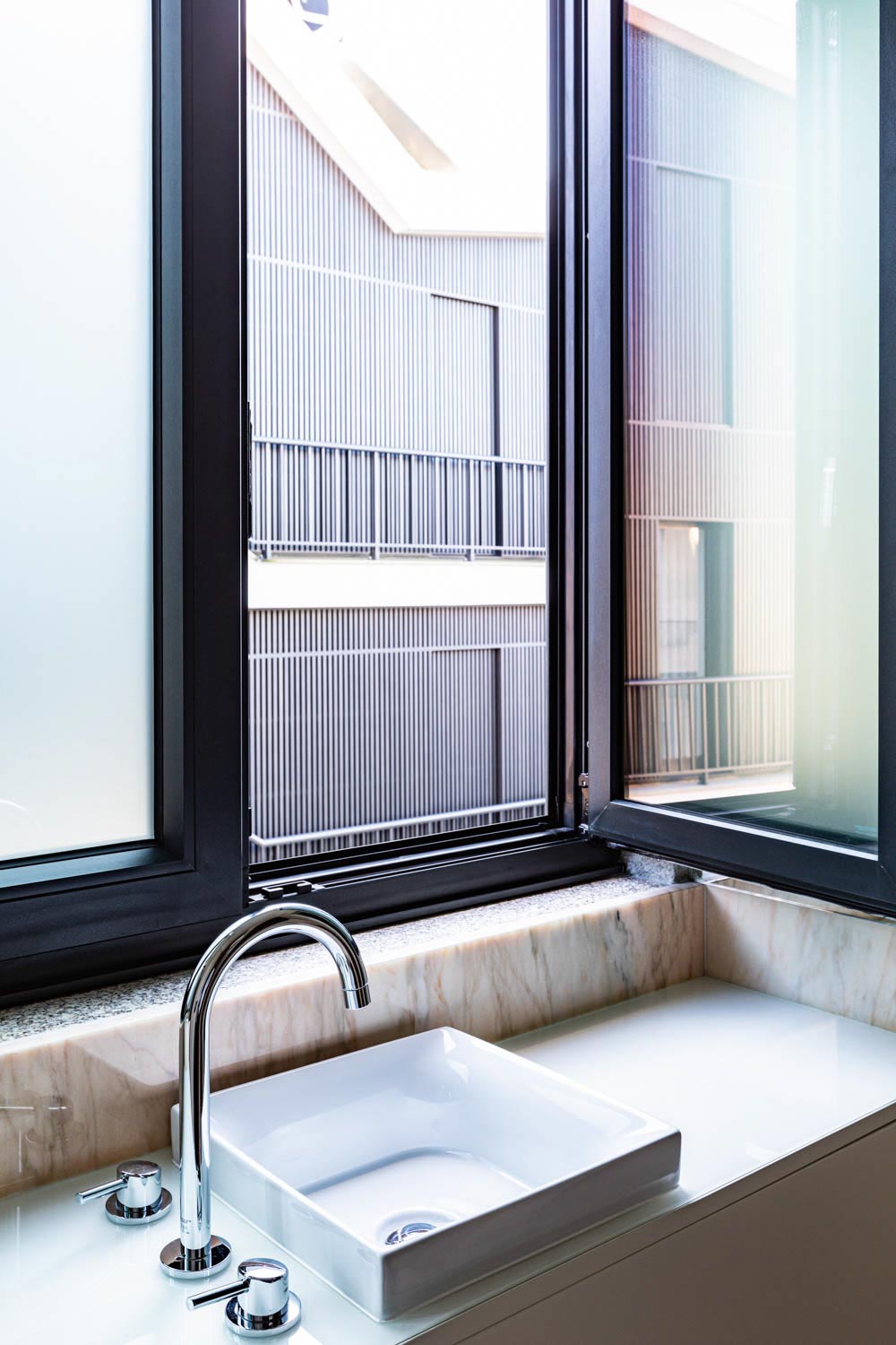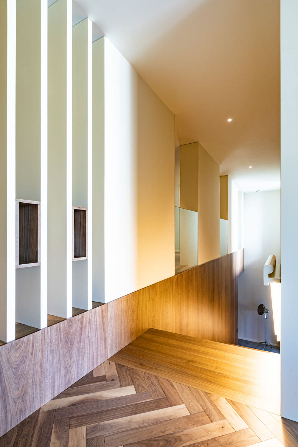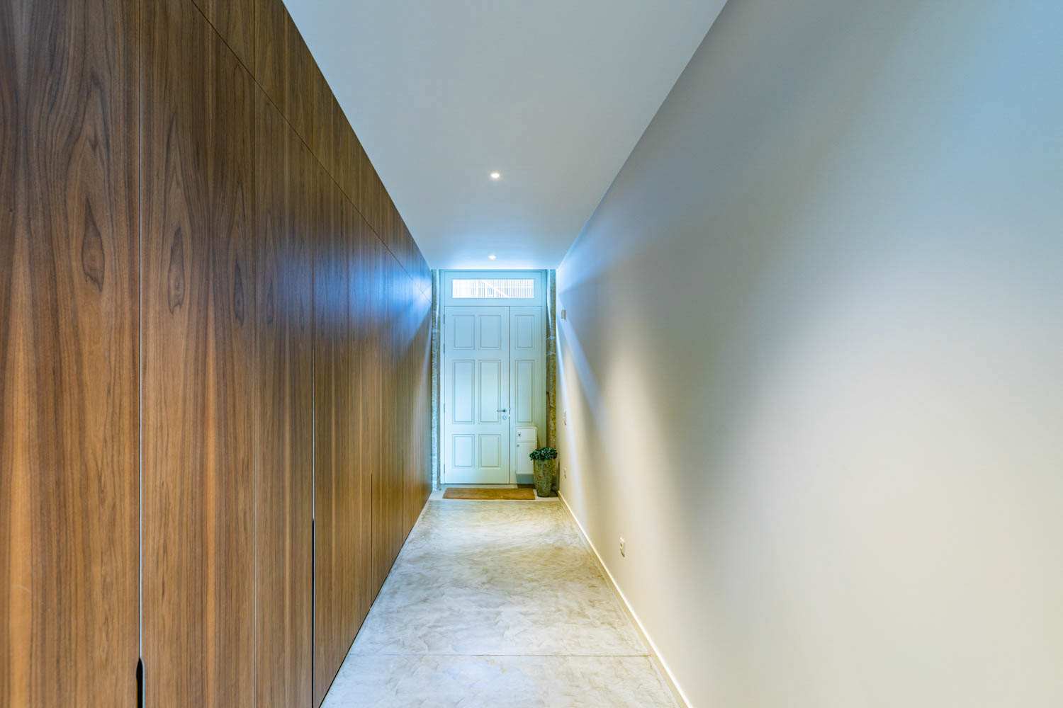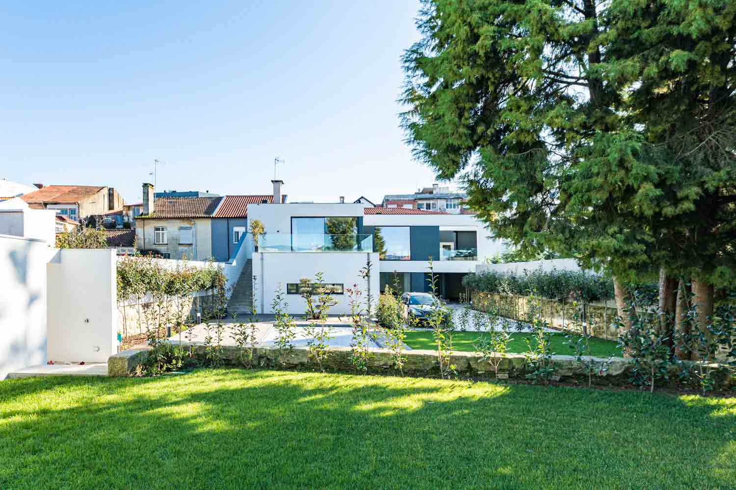 O volume onde se encontra a entrada carral, define o conceito do projeto, onde o diálogo entre passado e presente é a premissa central. Este volume moderno de linhas contemporâneas desenvolve-se em dois pisos: o rés-do-chão, revestido a pedra de granito que reforça a identidade da fachada original, enquanto o piso recuado de cobertura plana cria um contraste em relação à cobertura inclinada da edificação histórica, destacando a interação harmoniosa entre tradição e modernidade.