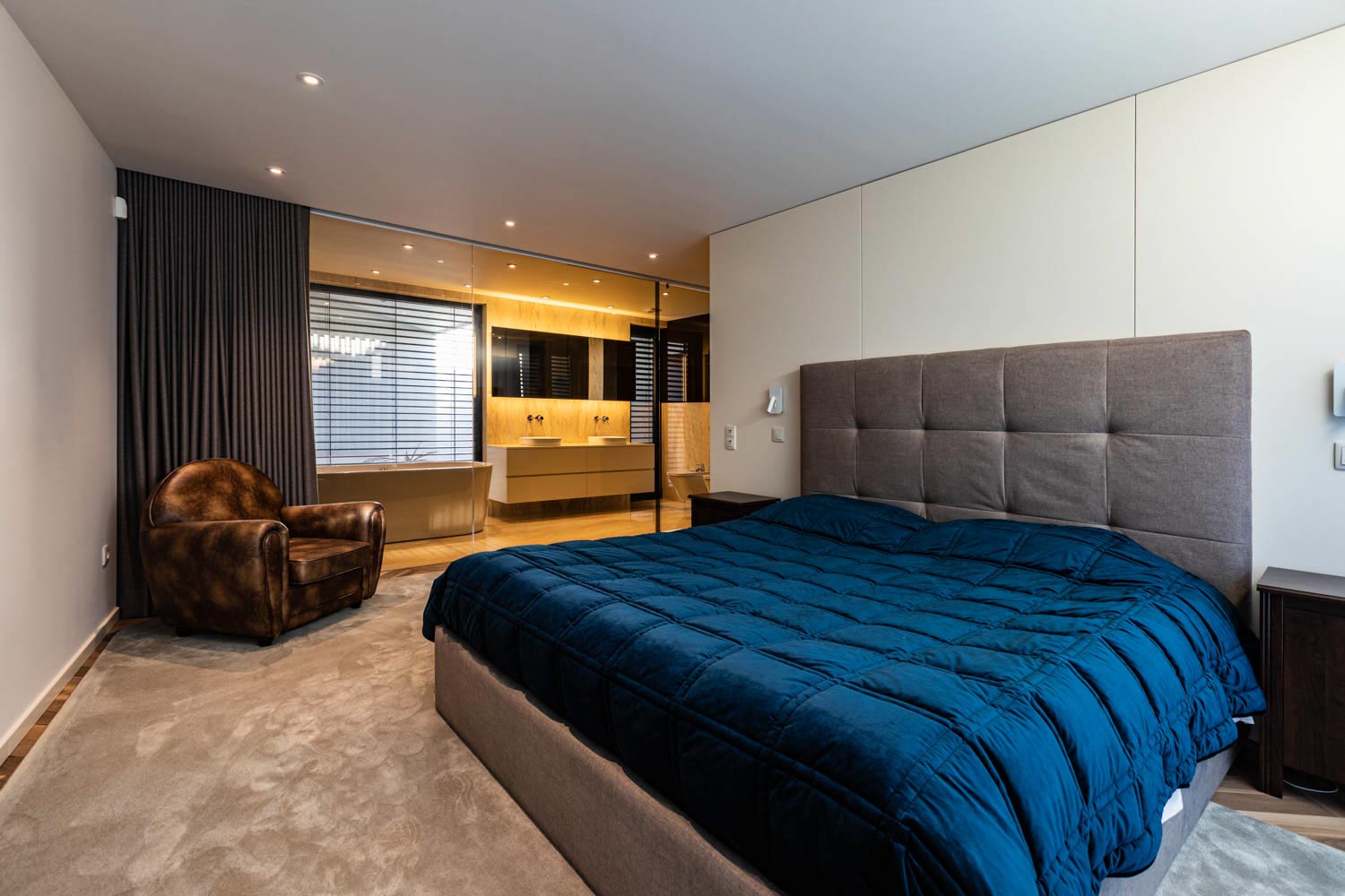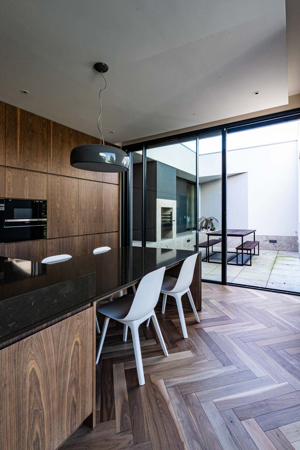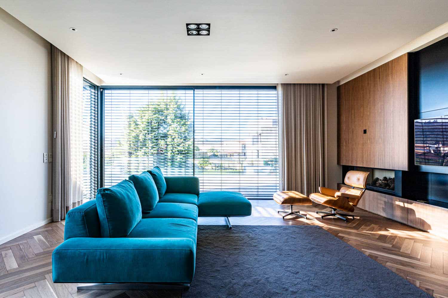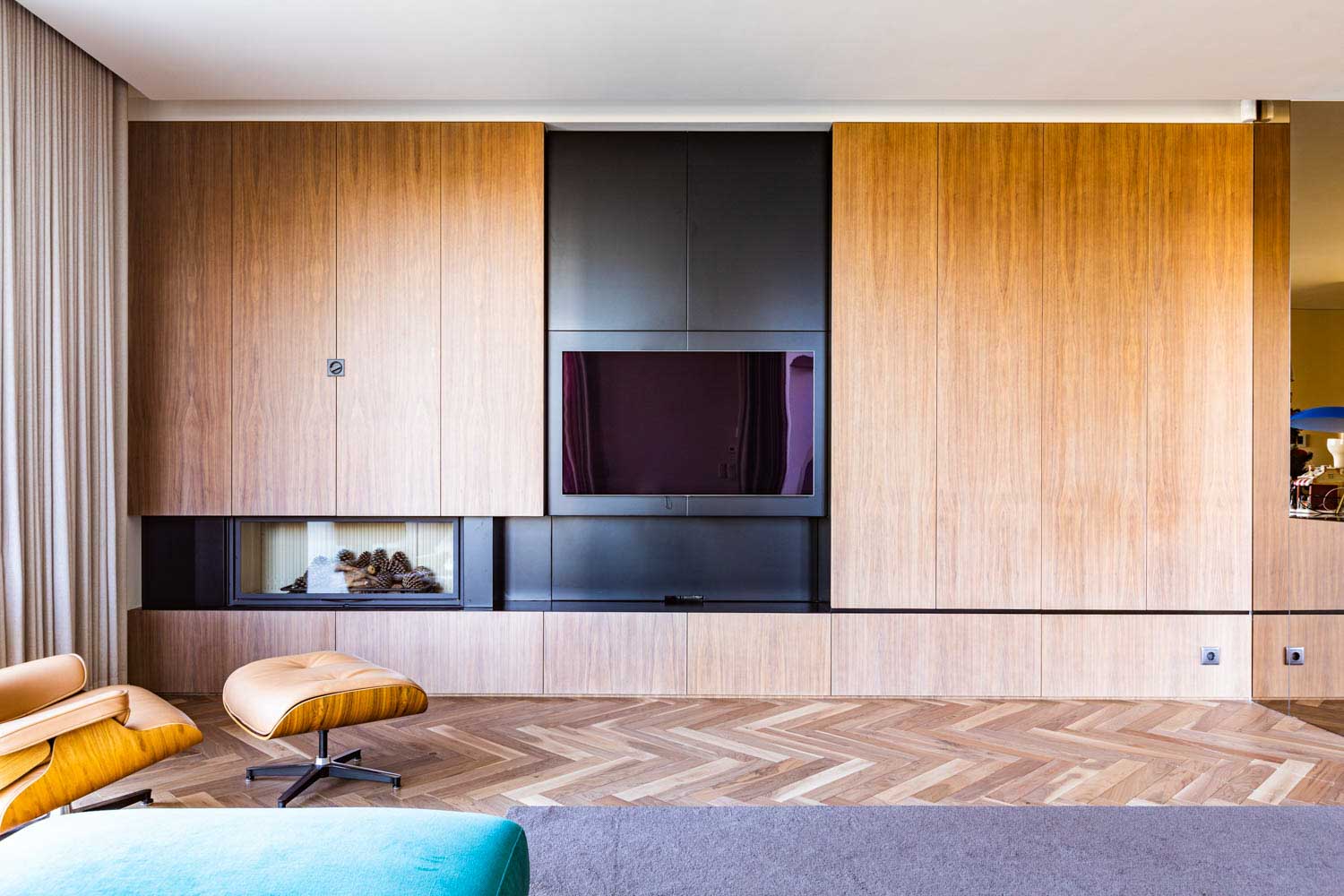 No interior, os espaços destacam-se pelo seu carácter singular, onde a materialidade se afirma como elemento de identidade. A madeira, as pedras e os grandes vãos envidraçados criam uma continuidade cromática que harmonizam todo o projeto. O resultado são ambientes acolhedores, elegantes e cheios de personalidade, refletindo uma combinação harmoniosa entre conforto e estética.