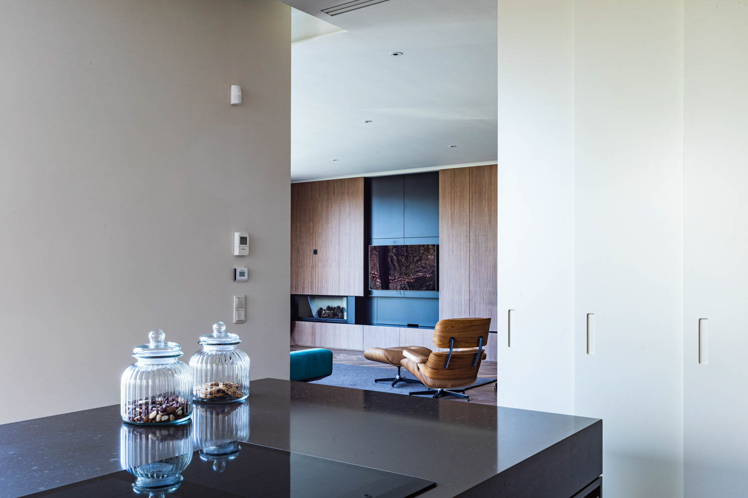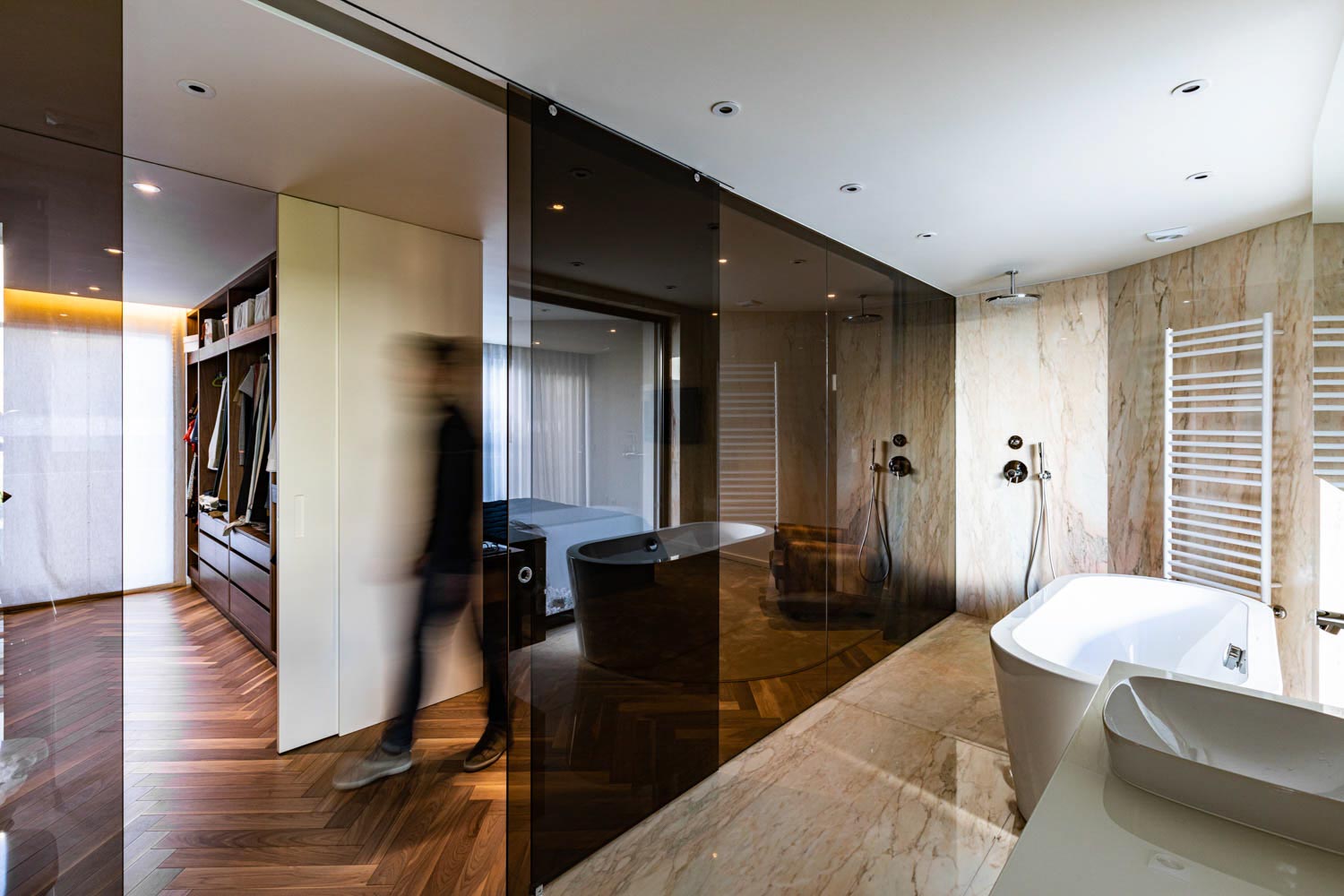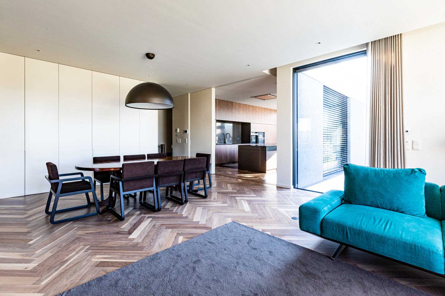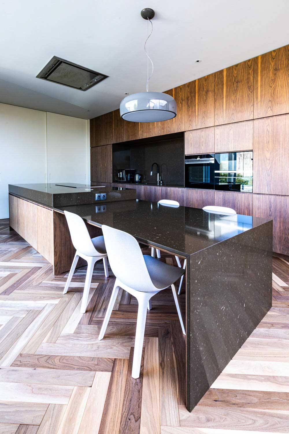 No interior, os espaços destacam-se pelo seu carácter singular, onde a materialidade se afirma como elemento de identidade. A madeira, as pedras e os grandes vãos envidraçados criam uma continuidade cromática que harmonizam todo o projeto. O resultado são ambientes acolhedores, elegantes e cheios de personalidade, refletindo uma combinação harmoniosa entre conforto e estética.